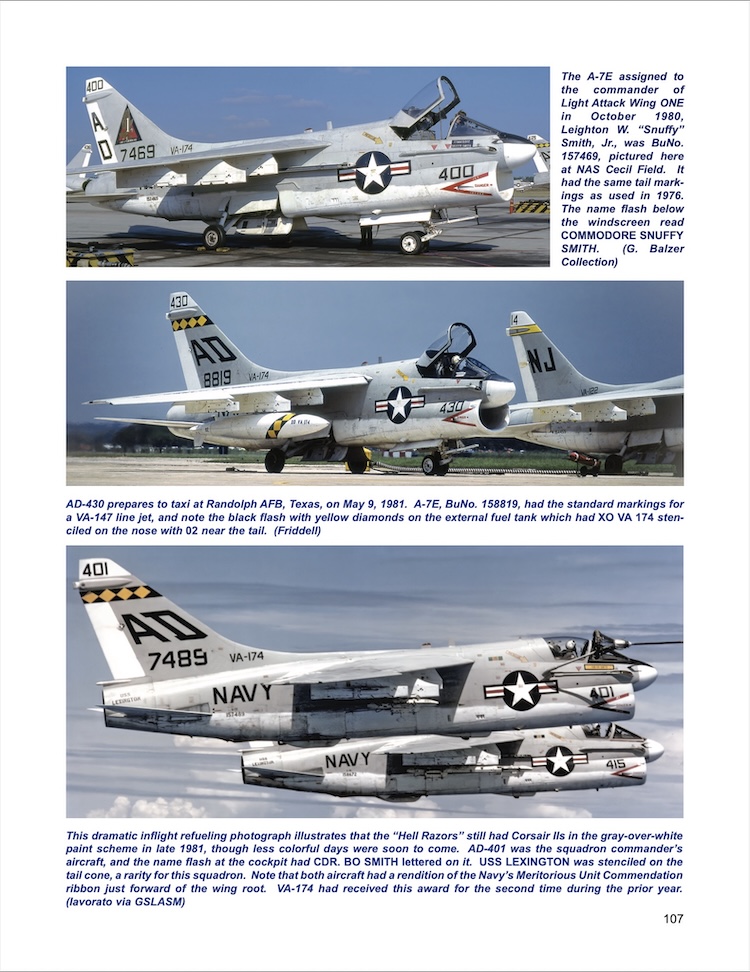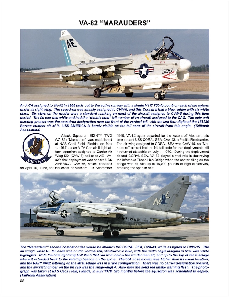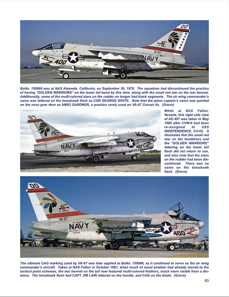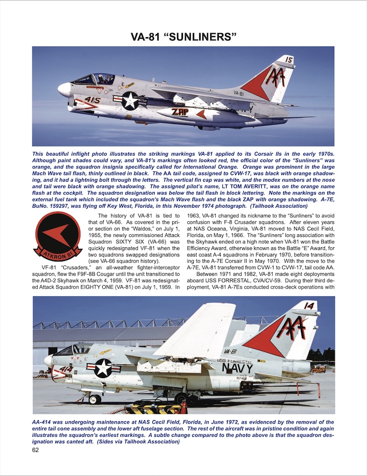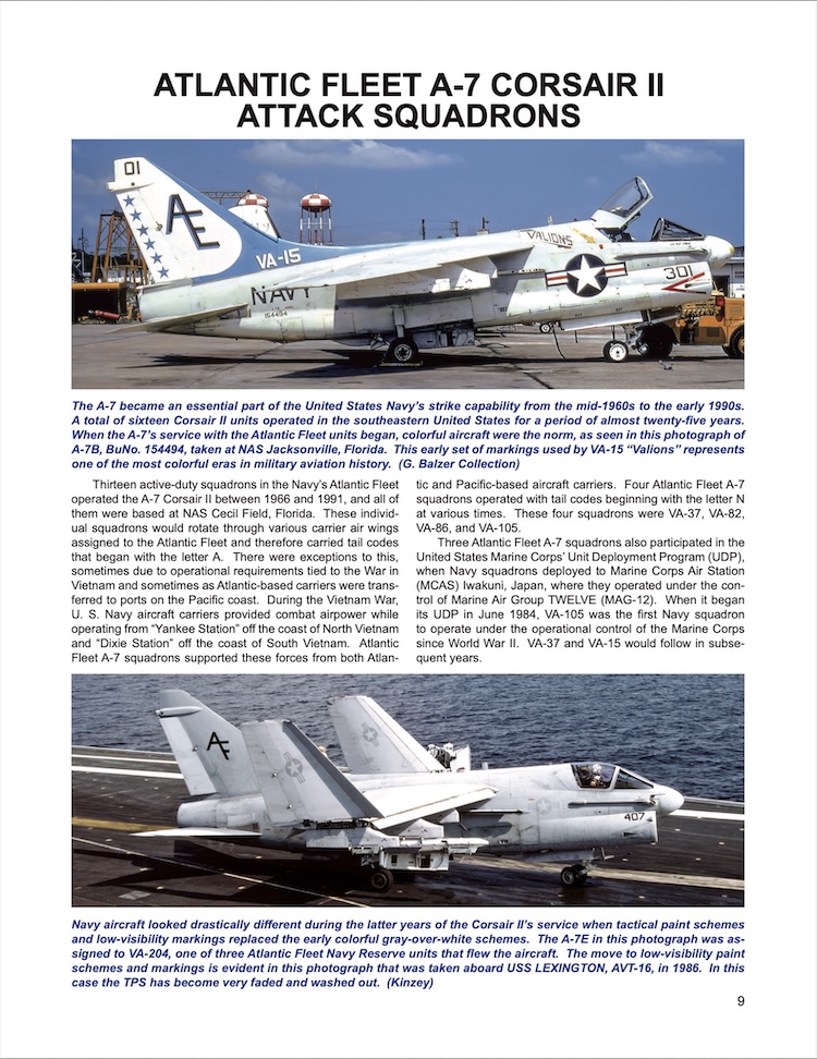 Colors & Markings of the A-7 Corsair II, Part 1:  U. S. Navy Atlantic Fleet Squadrons has over 325 full-color photographs and illustrations.  It is the most comprehensive book ever published on what the Atlantic Fleet A-7 Corsair II squadrons used for their distinctive unit markings, and how they evolved.