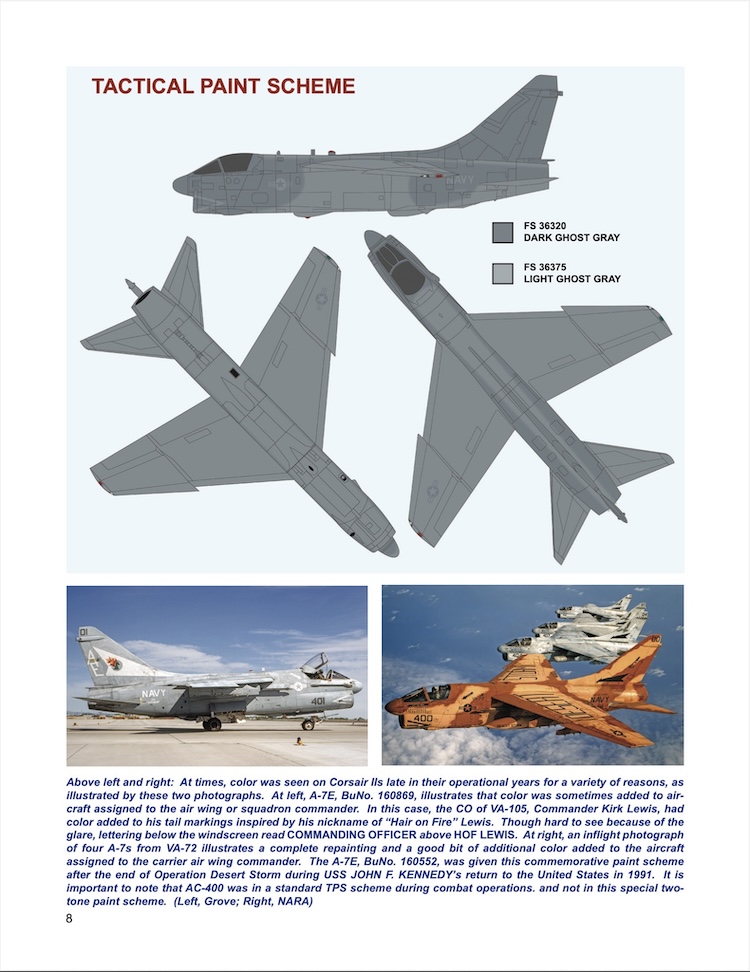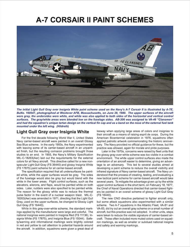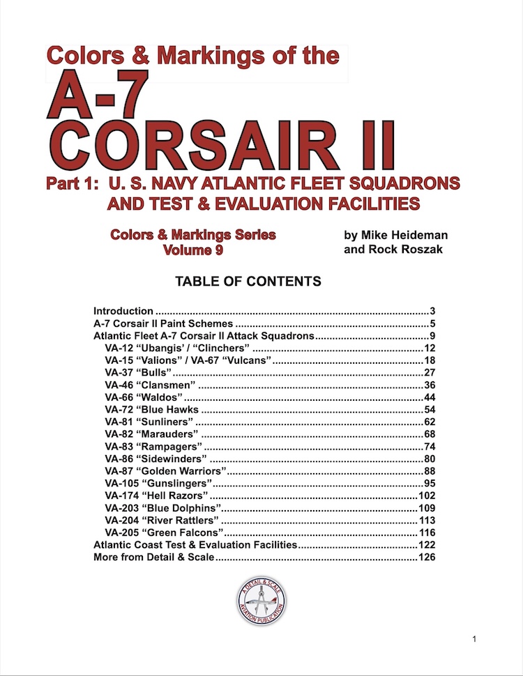 This publication has its roots in the late 1980s when Detail & Scale originally published Colors & Markings of the A-7E Corsair II in 1988 as the ninth volume in the original Colors & Markings Series, and it covered Atlantic Fleet squadrons in the post-Vietnam War era.