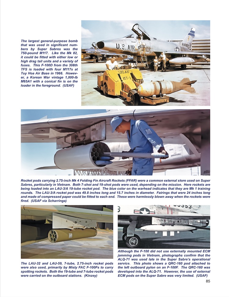 A comprehensive chapter on Super Sabre details, long a hallmark of the Detail & Scale brand, follows. This chapter contains nine sections covering the cockpit, windscreen and canopy, fuselage, wing, landing gear, tail, engine, 20-mm cannons, and pylons and external stores details. Complete coverage of almost every square inch of the Super Sabre is provided through 136 high-resolution photographs, 115 of which are in full color.